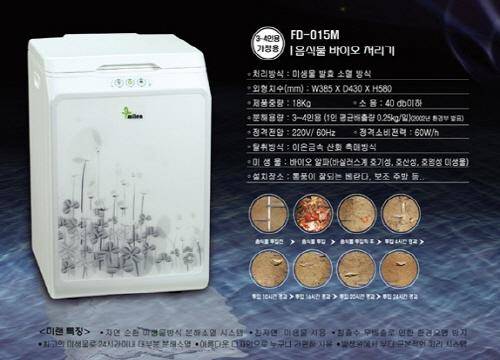 미생물 발효 소멸식 음식물쓰레기처리기인 미랜바이오의 '미랜 FD-015M'는 친환경, 고기능성 제품으로 손꼽히는 대표적인 제품이다.
