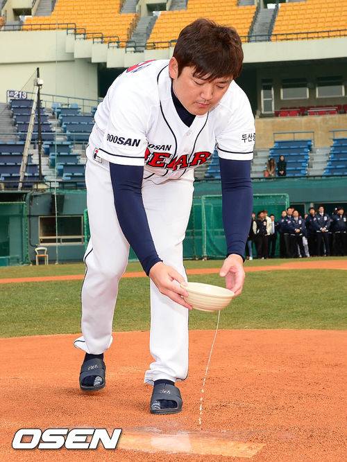 [OSEN=잠실 ,백승철 기자] 28일 오전 서울 잠실구장에서 열린 두산 베어스의 2013시즌 우승 및 안전 기원제에서 김선우가 고사를 지내고 있다.