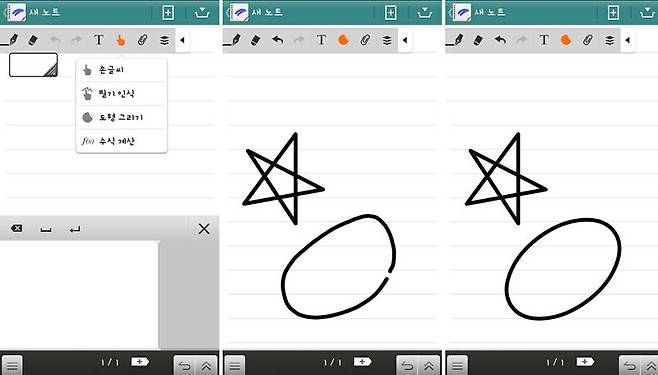 도형 그리기와 수식 계산 기능이 재미있다. 원, 사각형, 삼각형, 별 등을 삐뚤빼뚤하게 그려도 곧고 매끈하게 바꿔준다. 수식 계산 기능은 수식을 풀어주는 것은 아니고 손글씨로 쓴 제곱, x, 분수 등의 수학 기호를 키보드로 친 것처럼 노트에 입력한다.