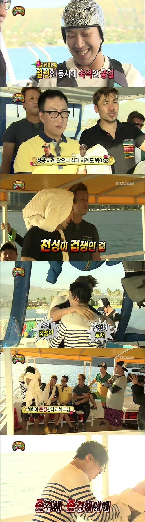 "날 존경한다고 해" 라는 노홍철의 놀림에 결국 하하는 발끈해 "존경해!" 라고 짜증스럽다는 반응을 보여 두 사람의 유쾌한 신경전을 보는 재미를 돋우었다.