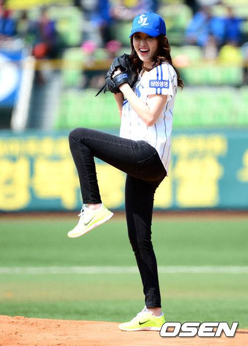 경기에 앞서 배우 이세은이 시구를 하고 있다.