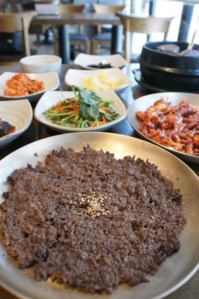 보통 불고기감으로 앞다리살이나 목심 등의 저지방 부위를 사용하는데 이집은 1+ 이상 등급의 등심이나 채끝, 갈비 등 주로 구이메뉴로 내는 부위도 골고루 섞는다. 부드러운 고기가 들어가기 때문에 쫄깃하다. 지방질이 적당히 분포돼 있어 육즙도 풍부하다. 충분히 숙성시킨 한우암소고기만 사용하기 때문에 암소 특유의 고소한 풍미도 느낄 수 있다.