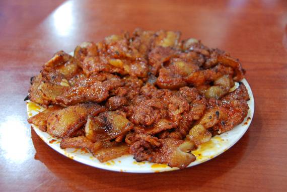 <배신식당>의 매력은 막 썰어낸 듯한 투박한 돼지고기다. 얇게 저미거나 일정한 두께로 썰 때보다 훨씬 볼륨감이 있어 보인다. 입안에 넣었을 때 가득 찰 만큼 큼직하기도 하다. 일정 부위만 사용하면 맛이 한정적이라는 생각에 이집은 암퇘지의 삼겹살과 목살, 전지, 후지 등의 부위를 골고루 사용한다. 다양한 부위가 들어가기 때문에 풍미와 식감 역시 다양하다. 지방이 거의 없는 살코기와 부드러운 비계 맛이 적절히 어우러진다. 2~3일에 한 번씩 돼지고기를 마리째로 들여와 주인장이 맛있는 부분만 골라 작업한다. 일반 불고기보다 비계 부분이 많아 고소하고 부드럽다.
