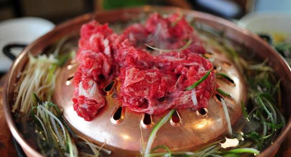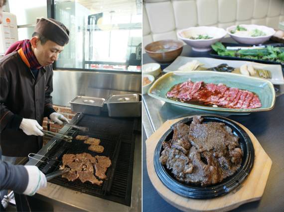인천논현점의 한우생불고기(200g 1만8000원)는 넓적한 황동불판에 육수를 부어 채소와 슬라이스한 소고기를 푹 담가 먹는 서울식불고기와, 불맛 '작렬'하는 석쇠불고기의 맛을 동시에 즐길 수 있는 메뉴다. 비결은 서울식 전골불고기판인 황동불판을 참숯불 위에 올린 데 있다. 불판 중간 부분에는 구멍이 뚫려 있어 고기에 참숯의 향이 그대로 전해진다. 불판 가장자리의 움푹 팬 부분에는 육수를 넉넉하게 부어 각종 채소와 당면 등을 담가 먹을 수 있다.