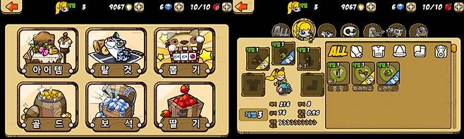 무기 외에도 모자를 씌우거나 갑옷을 갈아입히는 등 능력치에 많은 변화를 줄 수 있다. 아이템을 바꿔 끼면 루루와 동물 유닛들의 외형이 바뀌는데, 이러한 아바타 요소가 또 하나의 즐거움으로 작용하는 것이다.