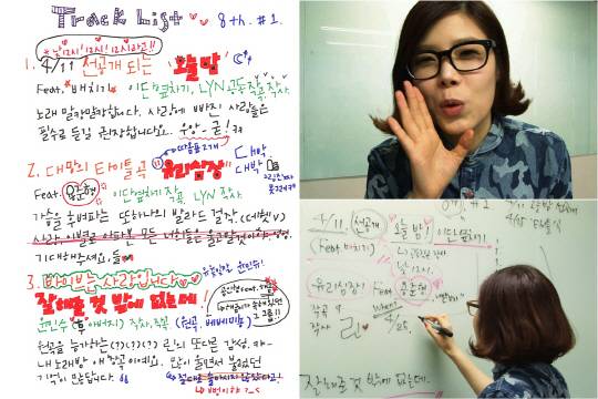 특히 강의 동영상 외에도 뮤직앤뉴 공식 트위터 및 페이스북을 통해 직접 작성한 '앨범 트랙리스트' 이미지를 공개하면서 린의 예쁘고 독특한 손글씨가 네티즌들 사이에서 또 다른 화제가 되고 있다.