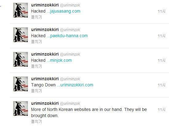 이날 우리민족끼리 트위터(@uriminzok)에는 어나니머스로 추정되는 이들이 "북한 웹사이트 대부분이 우리 손아귀에 들어왔다"는 트윗이 올렸다. 트위터 계정을 해킹해 자신들이 북한 사이트를 해킹했다고 주장한 것이다.