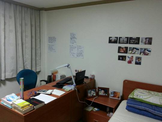 초년병 시절 그랬던 그가 지금은 어떻게 하고 살기에 여전히 주목받는 선수가 됐는지 궁금했다. 모비스 구단은 "긴말할 것 없이 양동근이 평소 사용하는 숙소 방을 살펴보면 알 수 있다"고 했다. 그래서 울산시 북구 양정동 모비스 선수단 숙소에 있는 '양동근의 방'을 살짝 훔쳐봤다. 시즌 때마다 제집처럼 사용하는 보금자리다. 무단 가택침입은 아니다. 당사자의 양해를 구한 뒤 엿본 방안 풍경이다.