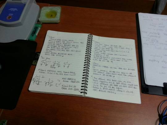 연구 결과물은 노트북 옆에 놓여진 두터운 노트에 빠짐없이 기입된다. 신인 시절 유 감독의 지적사항을 적었던 일기장이 이제는 농구 연구일지로 바뀐 것이다.