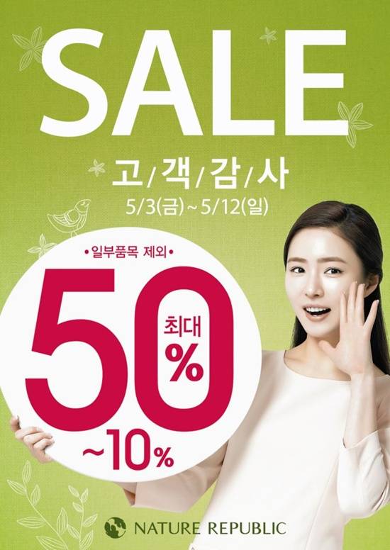 [엑스포츠뉴스=김승현 기자] 화장품 브랜드 네이처리퍼블릭은 오는 12일까지 10일간 온-오프라인에서 멤버십 고객을 대상으로 제품을 최대 50% 할인 판매하는 '고객 감사 세일'을 실시한다고 3일 밝혔다.