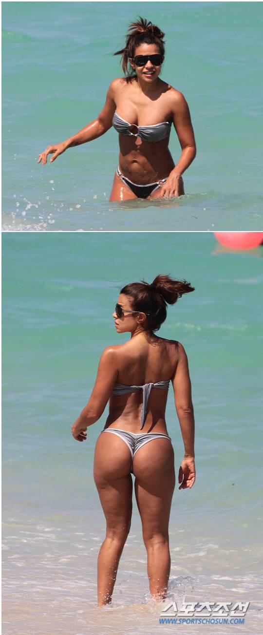 비다 구에라는 '한 뼘' 비키니 차림으로 볼륨감 넘치는 글래머러스한 몸매를 과시해 시선을 모았다. 특히 그녀는 '명품 엉덩이'라는 별명답게 풍만한 엉덩이를 과감하게 노출해 눈길을 끌었다.