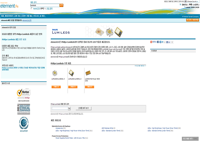 엔지니어 및 전자부품 구매자를 대상으로 한 정보 포털이자 전자부품 쇼핑몰 엘리먼트14(element14)는 모회사 프리미어 파넬(Premier Farnell plc, 런던증권거래소명: pfl)이 세계적인 LED칩 생산업체인 필립스 루미레즈(Philips Lumileds)와 글로벌 유통 계약을 체결했다고 밝혔다. 이번 계약을 통해 LED 부품 유통사로서의 입지가 더욱 강화될것으로 기대했다.
