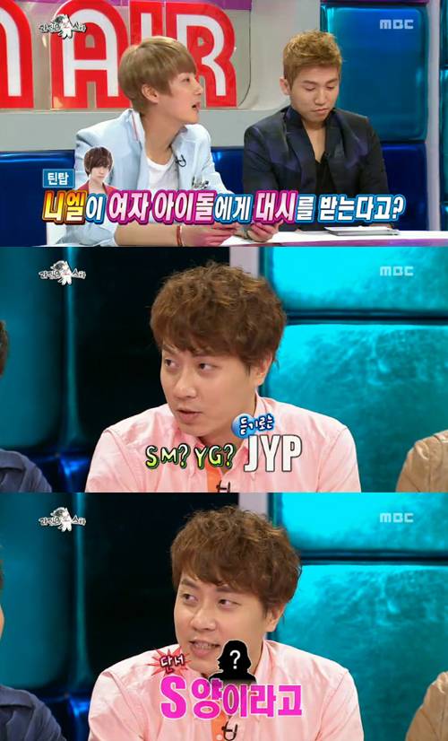 [니엘이 JYP소속 S양의 대시를 받았다고 폭로한 앤디. 사진 = MBC '라디오스타' 방송화면 캡처] 기사 제보 및 보도자료 press@mydaily.co.kr- NO.1 뉴미디어 실시간 뉴스 마이데일리( www.mydaily.co.kr) 저작권자 ⓒ 마이데일리. 무단전재&재배포 금지 -