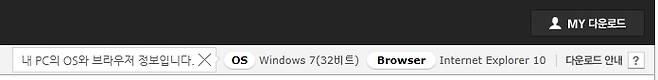 네이버 소프트웨어는 화면 오른쪽 위에 사용자 PC의 운영체제, 웹 브라우저 종류, 버전 등을 표시한다. 소프트웨어 설치 시 자신의 운영체제에 맞는 버전을 내려 받으면 된다.