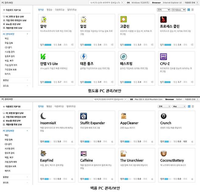 특히 'Mac(이하 맥, 애플의 운영체제)'용 소프트웨어를 보강한 점이 눈에 띈다. 맥 사용자가 윈도 사용자보다 그 수가 적다 보니 원하는 소프트웨어를 찾기가 어려웠다. 네이버 소프트웨어는 맥용 소프트웨어를 600개가량 제공하며 앞으로 제공량을 더 늘릴 계획이다.