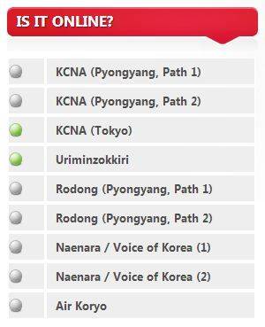 12일 북한 전문 소식지인 노스코리아테크에는 위젯(미니 응응프로그램)을 통해 실시간으로 북한 사이트에 대한 핑 정보를 공유하고 있다. 이에 따르면 현재 조선중앙통신, 노동신문, 내나라, 고려항공의 홈페이지 접속이 마비된 것으로 확인되고 있다.