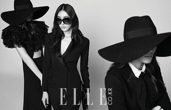 (왼쪽부터) 장수임이 입은 블랙 러플 장식 드레스와 블랙 햇은 모두 가격 미정, Saint Laurent.지현정의 더블브레스트 재킷과 팬츠는 모두 가격 미정, Dior.오버사이즈 선글라스는 30만원대, Anna Sui by Dari F & S.블랙 클러치백은 1백18만원, Neil Barrett by Raum.이현이의 블랙 햇과 화이트 블라우스, 재킷은 모두 가격 미정, Saint Laurent.