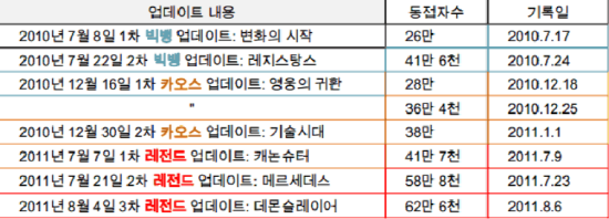 10년간 매년 최고 동시접속자수를 기록하고 있다. 2011년에는 동시접속자수 62만 6천명이라는 대기록을 세우기도 했다.
