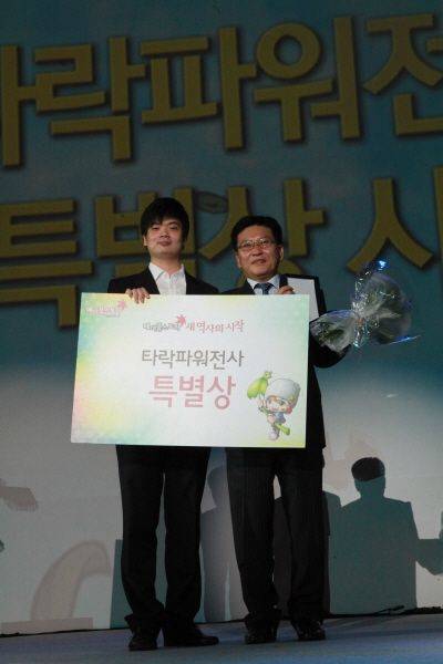 메이플스토리 개발 총괄을 맡고 있는 오한별 프로듀서. 메이플스토리 이용자라면 그를 모르는 사람이 없을 정도로 인기인이다. 오한별 PD는 메이플스토리의 최초 200레벨 달성자로 잘 알려진 50대 이용자 '타락파워전사'에 특별상을 시상했다.