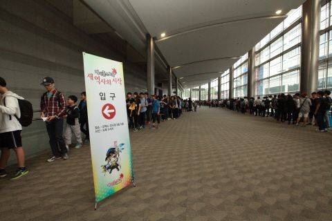 행사 시작 전부터 가족, 친구들과 함께 모인 메이플스토리 이용자들로 입구는 인산인해를 이뤘다. 10년 동안 처음으로 열린 메이플스토리 이용자 행사에 대한 기대감은 사전행사부터 여기저기서 높아져만 갔다.