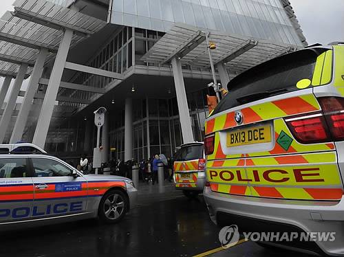 epa03715406 Police vehicles parked outside one of the entrances to London Bridge underground and railway station in central London 24 May 2013 following the report of a 'major incident'. Reports suggest that a man was wielding an axe in the station. Armed police were said to be on site and no one was being let in or out EPA/FACUNDO ARRIZABALAGA