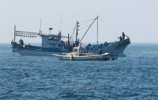 | ▲ 14일 오전 제주 서귀포시 가파도 남쪽 앞바다에서 어민들이 자리돔을 잡기 위해 조업을 하고 있다. |