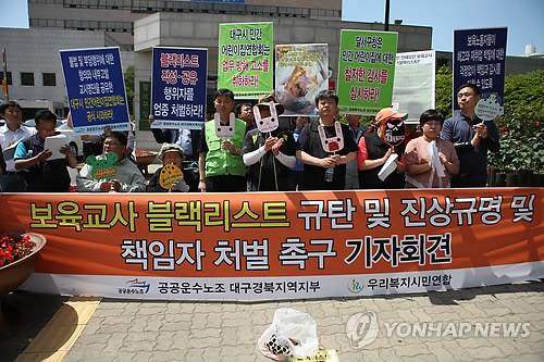 (대구=연합뉴스) 최수호 기자 = 재취업을 방해하기 위해 보육교사들의 신상이 담긴 '블랙리스트' 문건을 작성·유포한 대구 한 어린이집에서 아이들과 교사들이 부당한 대우를 수시로 당했다는 주장이 나왔다.