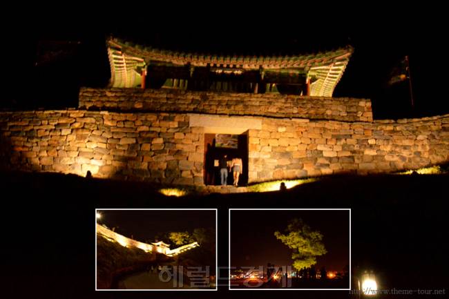 그러나 공산성 여행은 이것으로 끝이 아니다. 밤 풍경도 봐야 마침표를 찍을 수 있다. 필자 역시 이를 빠뜨릴 수 없었다. 전날 저녁 카메라 들고 이 멋진 야경을 먼저 '탐'했다. 가족, 친구, 연인 등 모두 손잡고 산책 나온 사람들로 꽉 찼다. 혼자인 사람은 필자 뿐이었다.