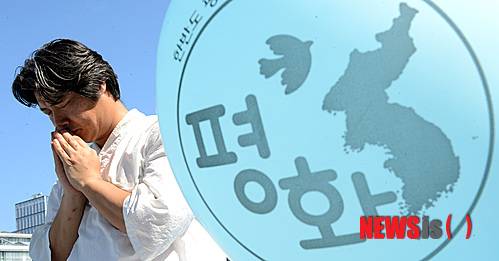 【서울=뉴시스】박상훈 기자 = 9일 오후 서울 종로구 정부서울청사 앞에서 열린 '615공동선언 실현과 한반도 평화통일 기원 현장 연합예배'에서 참가자들이 기도하고 있다. 2013.06.09.
