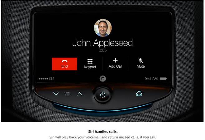 애플이 세계개발자회의(WWDC)에서 처음 공개한 iOS 인더카 앱은 음성만으로 차의 인포테인먼트 시스템을 조작할 수 있게 한 프로그램이다. 차내 디스플레이 화면이 아이폰 화면을 그대로 보여준다. 음성인식 기술 시리(Siri)를 활용한 차내 원격 조정 기술 `아이즈 프리(Eyes Free)`의 연장선이다.