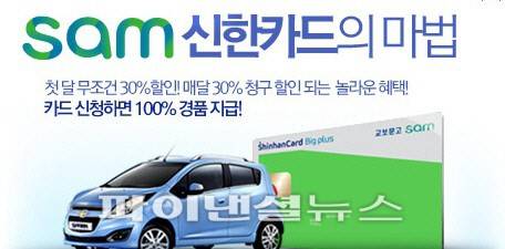 '교보문고 sam 신한카드'는 교보문고가 국내 최초로 선 보이는 e북 서비스 'sam' 전용 할인 카드다. 카드 전월 실적 기준으로 최대 30% 할인된 가격으로 e북 서비스 sam을 이용할 수 있다. 사용 실적이 50만원 이상인 고객이 'sam 5 결합형' 서비스 이용 시 월 1만9000원에서 30% 할인 된 금액으로 이용할 수 있다.