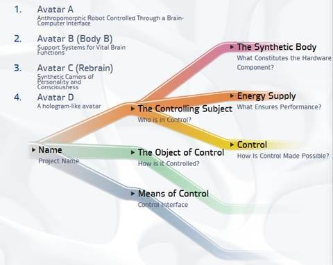 이 프로젝트의 첫단계는 아바타A로서 생명체 아바타, 즉 안드로이드를 만들되 그안에 실제 뇌는 넣지 않는다. 그 대신 누군가가 '정신적으로(mentally)' 이 아바타를 지배할 수 있도록 하는 단계이며 그 누군가는 이를 통해 자신의 몸에서와 똑같은 느낌을 받게 된다.