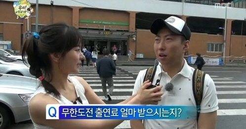 이어 맹승지는 박명수에게 "마지막 키스가 언제였는가", "무한도전 출연료는 얼마나 받는가" 등의 질문을 던져 박명수를 당황하게 만들었다.