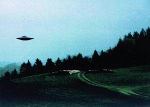 ↑ UFO 목격자인 미국인 빌리 마이어가 찍은 UFO 사진. 그러나 이 사진은 조작됐다는 의심을 받고 있다. |