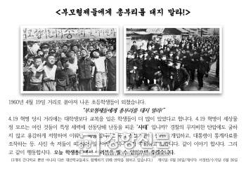 선전물에는 '부모·형제들에게 총부리를 대지 마라'라는 제목으로 "1960년 4월 19일 거리로 쏟아져 나온 초등학생들이 외쳤다. 부모·형제들에게 총부리를 대지 마라…(중략)…국가정보기관이 선거에 개입하고 대통령이 통계자료를 조작하는 등 사진 속 저들이 피 흘려 일구어낸 민주주의가 후퇴하고 있다. 같이 이야기하자. 그리고 같이 행동하자"라고 밝혔다.