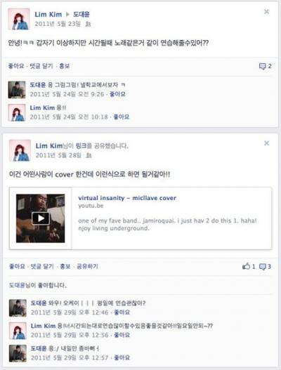 실제 투개월의 김예림과 도대윤의 페이스북 캡쳐화면
