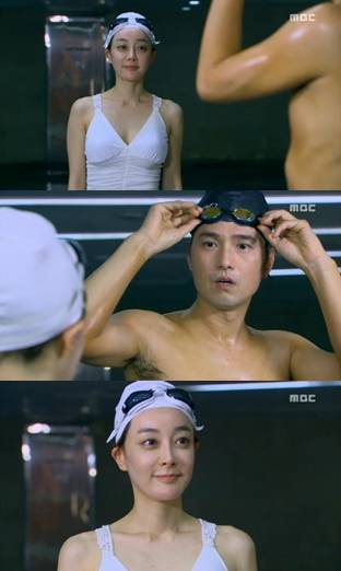 28일 오후 방송된 MBC 일일 드라마 '오로라 공주(극본 임성한 연출 김정호)'에서 오수성(오대규 분)이 황자몽(김혜은 분)에게 수영을 가르치는 장면이 그려졌다.