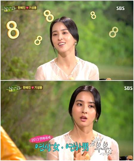 한편 한혜진의 고백에 MC이경규는 "한혜진씨 100살이면 기성용씨가 93살 정도 아니냐. 그때 되면 100살이나 93살이나 무슨 차이가 있겠나. 그렇게 생각해 보면 나이 차이는 별개 아니다"라고 역발상 해법을 제시해 한혜진을 웃음 짓게 만들었다.