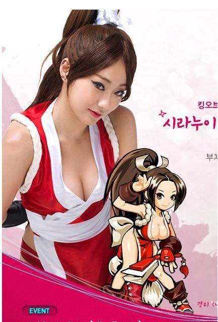 경리가 코스프레 복장을 착용한 시라누이 마이는 한국과 일본 코스프레 마니아들의 단골손님으로 가슴골을 내놓고, 옆트임이 있는 도복을 입고 있는 섹시 여성 캐릭터입니다.