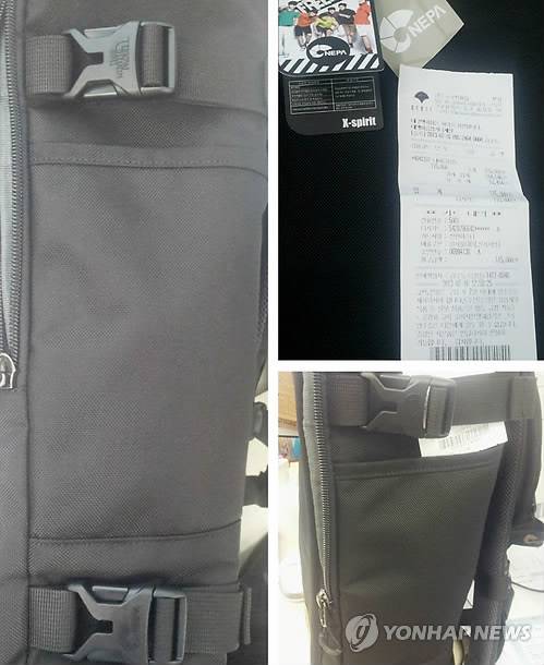 (대구=연합뉴스) 대구에서 사는 A씨가 지난 16일 대구백화점 '네파' 매장에서 구입한 백팩의 버클 하나에 '노스페이스' 로고가 새겨져 있어 짝퉁논란을 낳았다. 2013.7.18 < < 지방기사 참고 > >