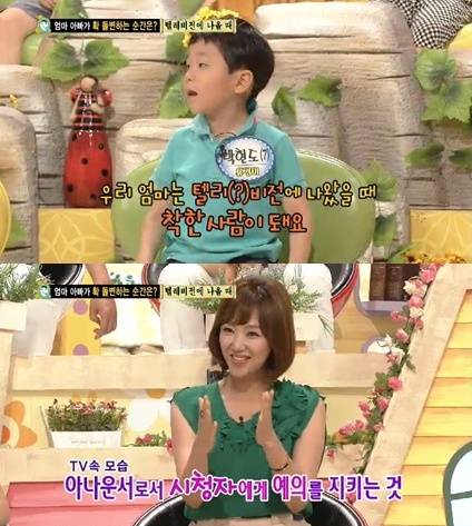 유경미 아나운서의 아들 박현도 군은 엄마가 텔레비전에 나올 때 확 돌변한다고 밝혔다.