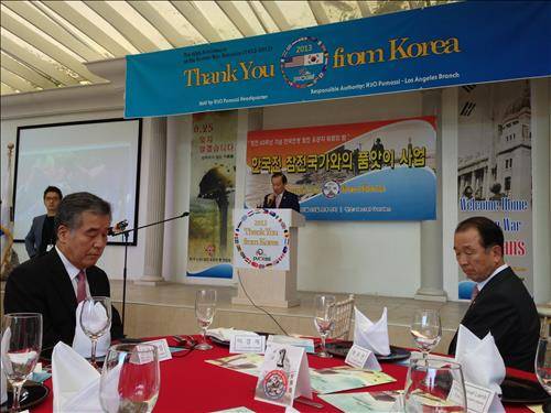 (로스앤젤레스=연합뉴스) 이정내 기자 = 이경재 방송통신위원장은 25일(현지시간) 미국 로스앤젤레스(LA)에서 열린 정전 60주년 기념행사 '땡큐 프럼 코리아'에 참석, 6·25 전쟁 미군 참전용사 20여명에게 감사의 마음을 전했다.