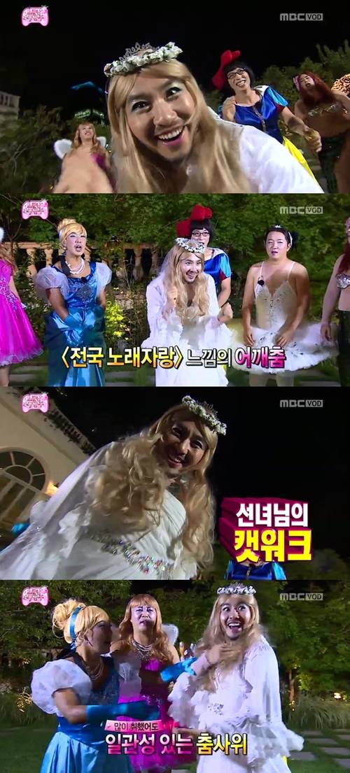 또한 노홍철은 카메라를 잡아먹을 듯한 눈을 한 채 캣워크를 선보이기도 했다. 이를 본 다른 공주들은 "언니 많이 취했다", "좀 천천히 마시라니까"라며 노홍철을 클럽에서 �아냈다.