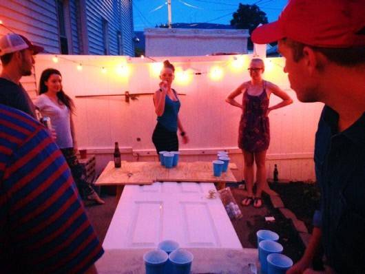또 다른 사진에는 친구들과 함께 맥주나 물로 채워진 컵에 탁구공을 테이블 양쪽에서 던지는 술자리 게임 '비어퐁(Beer-Pong)을 하며 즐거운 표정을 짓고 있는 모습이 포착되었다.