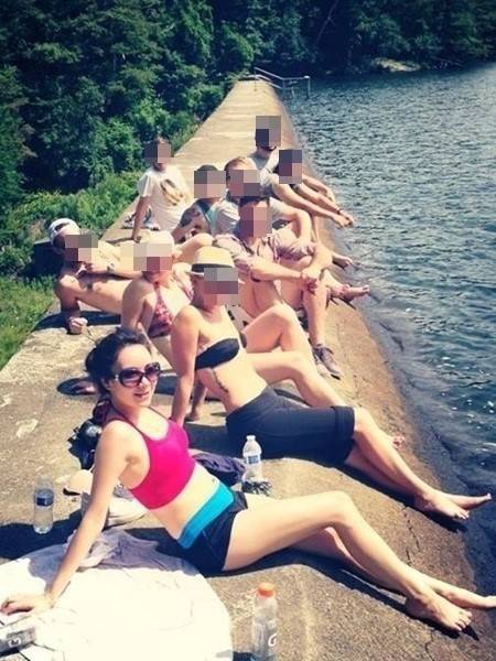 공개된 사진 속 비앙카는 친구들과 함께 강 가에 앉아 일광욕을 즐기고 있다.