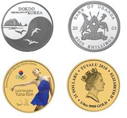 2010년 김연아의 올림픽 금메달 획득을 기념해 나온 주화도 마찬가지다. 영국연방에 속한 투발루에서 만들었기 때문에 주화의 뒷면에는 연방 통치권자인 영국 엘리자베스 여왕과 투발루의 영문 국가명이 등장한다.