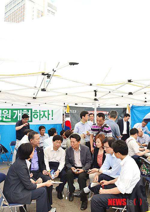 한편 김한길 대표는 첫 천막당사 의원총회에서 "민주당의 의원과 국민 여러분 모두에게 매우 어려운 시기다. 민주당이 일치단결하고 국민과 함께 반드시 국정원의 불법 대선개입 사건 진실 규명과 국정원 개혁을 이뤄내자"며 각오를 다졌다.