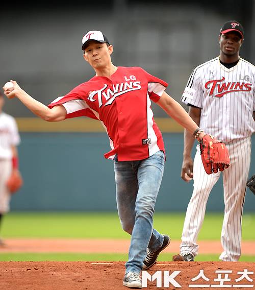 3일 오후 목동구장에서 열린 '2013 한국야쿠르트 세븐 프로야구' LG 트윈스와 삼성 라이온즈의 경기에서 배우 박성웅이 시구자로 나섰다.
