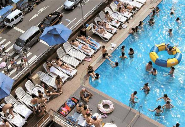 장안의 청춘남녀들이 바글바글…호텔 야외 수영장 참관기