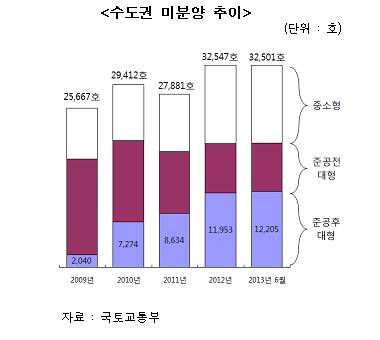 지난 6월말 현재 전국 미분양 물량은 3만2501가구로 4·1 대책 이후 준공후 미분양은 206가구가 증가한 상황이다. 특히 85㎡ 초과 중대형 미분양이 상대적으로 더 심각한 상황이다.